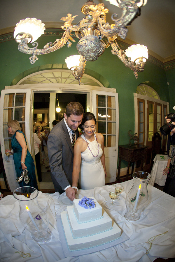 Seth and Jen's wedding was in the classic and stunning city of New Orleans. Can you think of a more perfect place to get married? The ceremony took place in the heart of the French quarter where all the fun happens and was photographed by Brett of Siegal Thurston Photography. The ceremony and reception was at the historical Beauregard-Keyes House, a tour de force of southern architecture. Seth and Jen met in New Orleans back in their college days before moving to San Diego. When it came time to choose a place to tie the knot it was a no-brainer: New Orleans won out. This is also a wedding after my heart in the sense that Seth and Jen trusted their instincts enough to improvise. They did their own flowers simply by picking them up from a flower shop en route. In true New Orleans style they hired the Coolbone Jazz Band to play the wedding, Second Line and reception. The venue was perfect for this couple who has been together nine years before getting married; it was the culmination of time well spent getting to know one another and being a mature couple who really knew what they wanted. Says Brett who photographed them, "It was a beautiful day in a fabulous setting and I was so honored to have been chosen to be part of it all . . . ."