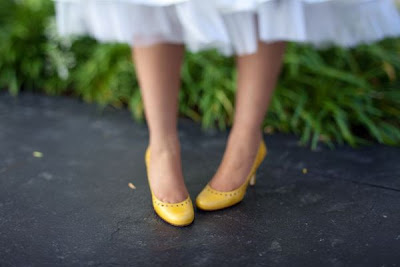 The first super cute patent leather yellow wedding shoes comes from a real wedding featured in Style Me Pretty.